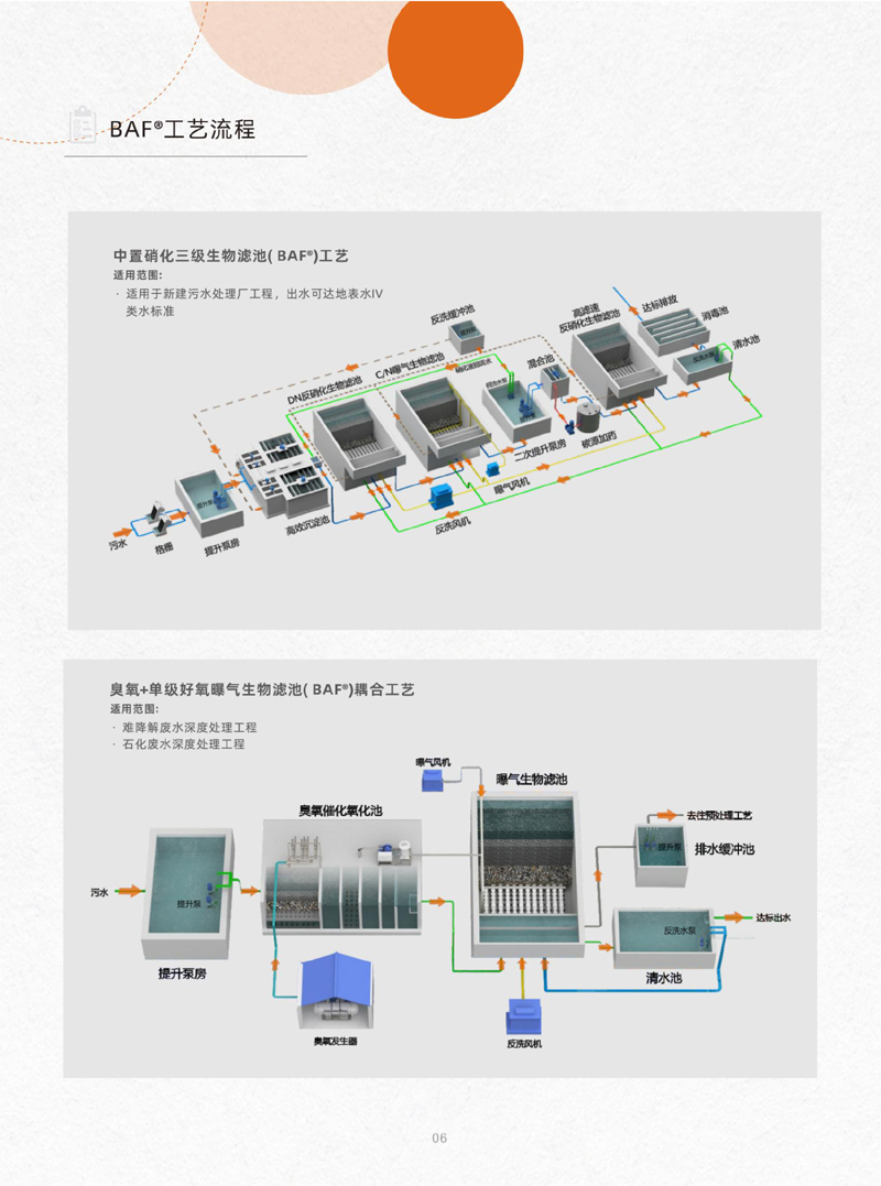 生物滤池(BAF) 深床反硝化滤池Debed 磁加载混凝沉淀池MagcoH 微纳米气浮反应器Sup-SEP 工业园区废水系统解决方案 泥膜耦合A³O工艺