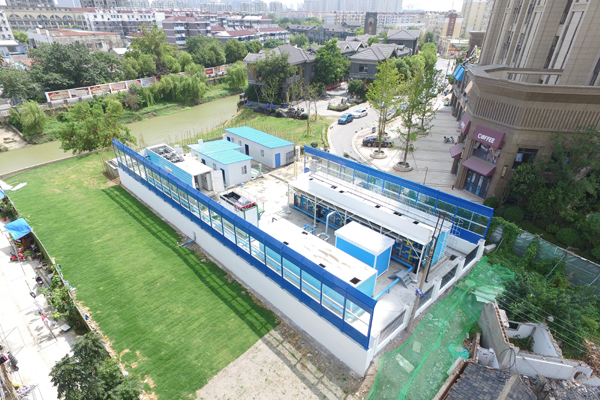 南京市浦口区南河流域净水活水工程林公堤站点,处理规模2000m³/d,采用我司研发的Rapid-Move黑臭水体旁路处理系统——“魔方磁+魔方尊”组合工艺完美(中国),从城南河西支沿河污水井和场站西侧污水排口取水,提升至场站处理净化达标后补水至上游西门桥处,作为河道补水水源。出水主要指标达到《地表水环境质量标准》(GB3838-2002)Ⅴ类水标准,其中氨氮达到IV类水标准。