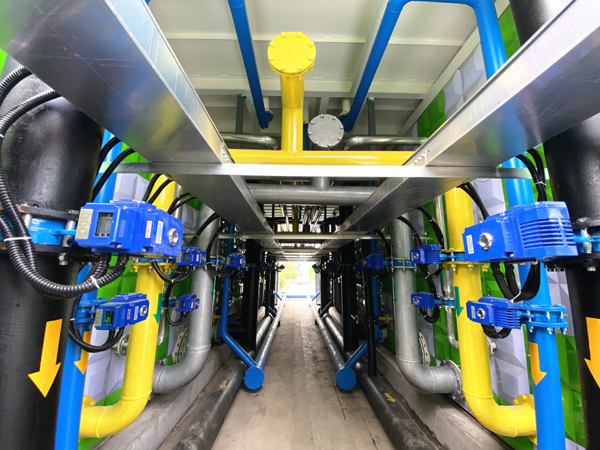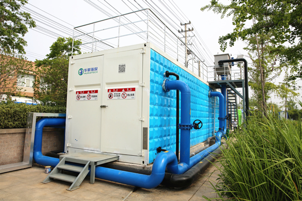 泗阳县经开区葛东河文成路水质净化站,位于文成东路与葛东河路交口东南角,秀达玩具厂以东,实际占地约704.2㎡,设计处理能力2500m³/d,采用磁混凝系统+曝气生物滤池系统的主体工艺处理截流污水。站区内的进水接自河道旁的污水井,出水通过清水渠流入葛东河。